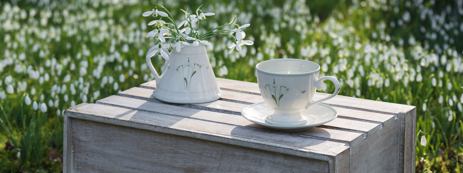 I can’t help but be inspired by the delicate strength of these little blooms. Fragile yet mighty, they push through the harshest conditions; their leaves are armed with hardened tips to help them break through frozen soil and their sap contains a form of antifreeze to prevent ice crystals forming. Welford Park near Newbury and Killerton House near Exeter are both well-known for their snowdrops and well worth a visit. Sometimes, a mere glimpse of this little flower is enough to lift my spirits, which is why you will find snowdrops represented on lots of my favourite things at this time of year – pottery, fabrics and soft-furnishings.