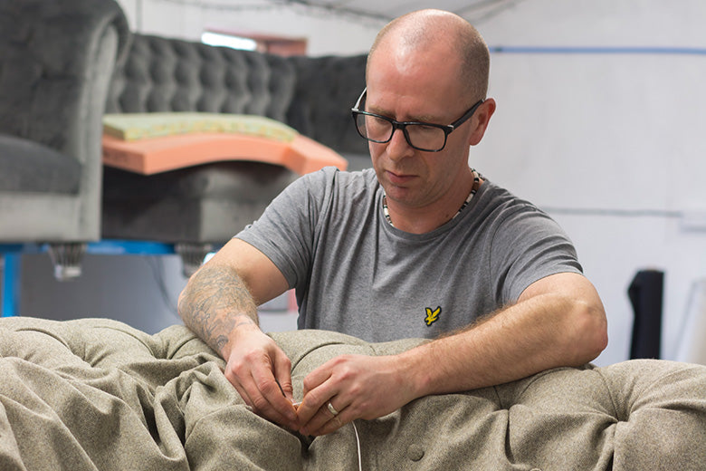 Our bespoke sofas and armchairs are handcrafted to order in a small family-run workshop in the Lancashire countryside, where we’ve worked with father-and-son team Tony and Connor for over a decade. With more than 30 years of experience, Tony leads a dedicated team who meticulously hand-build each piece using robust beech wood frames, quality joinery and high-grade upholstery components to ensure lasting comfort and durability.
