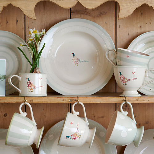 Hand-painted with a delightful pattern of birds, bees, flowers and colourful bunting, this pottery design is a wonderfully fun addition to any table or kitchen.