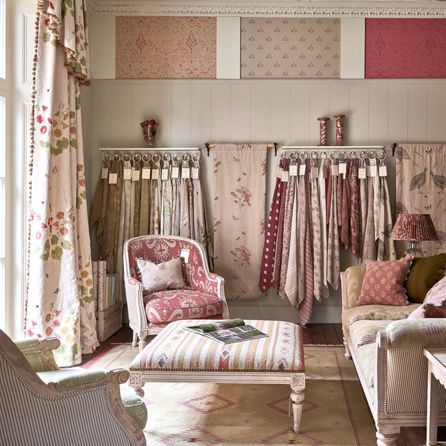 Home visits are really helpful and we would definitely recommend them where possible. Our designer can measure up for curtains if required and bring out lots of samples including cushions, lighting and kilims to give you the best idea of what will work in your room.