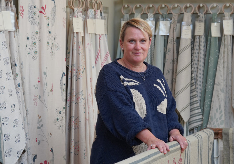 The Harrogate store has the largest bedroom setting of all our stores, with a Full Bed upholstered in Indian Red Leaf Linen, Blush Large Shalini Wallpaper and the complete range of bedlinen including hand-embroidered and applique quilts. Customers are encouraged to browse and mix and match quilts with cushion and throws, to find their perfect combination. Our Head of Retail & Harrogate store manager Tracy and her lovely team will be delighted to welcome you in-store.