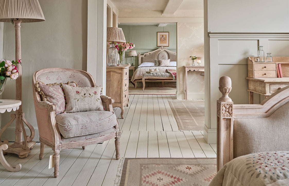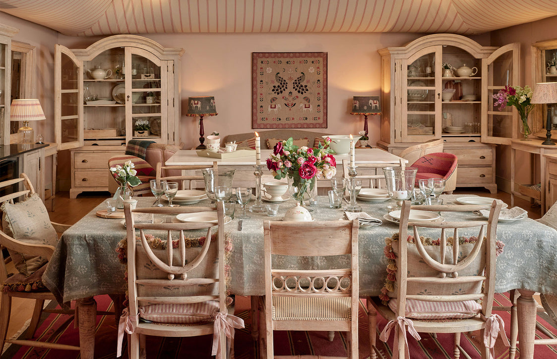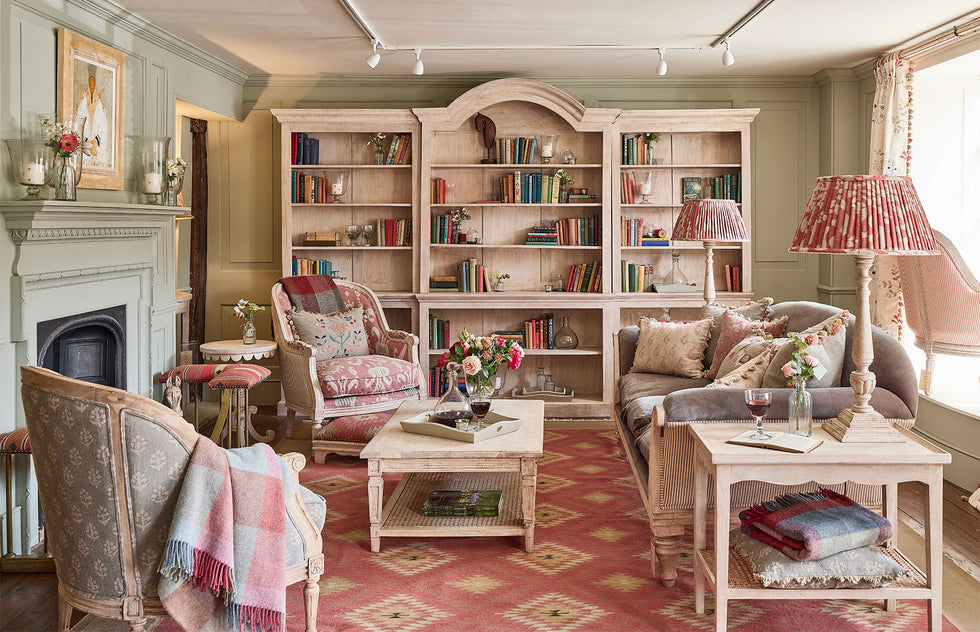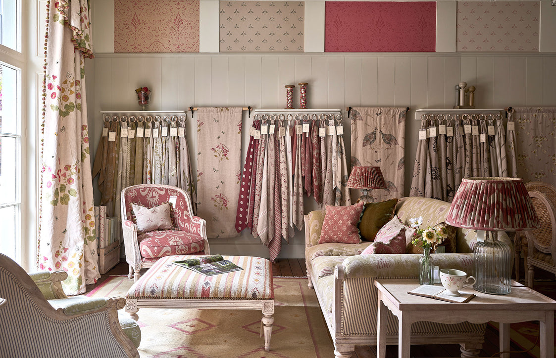 This spacious, beautiful store is set over two storeys. Upstairs there are two elegant bedrooms with an adjacent bathroom/dressing room and a garden room, showcasing our Garden Furniture. Downstairs is home to a delightful drawing room, cushion gallery, an Egyptian Blue study, a Green Wide Stripe wallpapered hallway and a tented ceiling kitchen room, showcasing our Pale Rose Umber Paint, new Bar Unit and Marble Top Kitchen Island.  A spacious fabric room with large moveable, hanging samples of all the fabrics in our range, makes it easy and fun, to experiment and find the right combination. Store manager Louise, and her lovely team look forward to welcoming you to the new Marlborough store and helping you with all your interior needs.