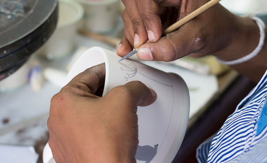 Our ever popular mugs bring a little art into everyday. Hand-painted by skilled artisans using brushes and hand-cut sponges, they are available in shapes and sizes to suit everyone. Made for everyday use and designed to enjoy forever, you can even personalise them, which we think makes for a great gift.